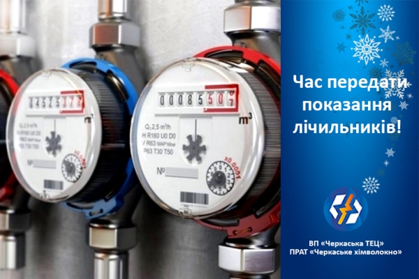 ВП «Черкаська ТЕЦ» ПРАТ «Черкаське хімволокно» повідомляє, що з 10 грудня розпочався період передачі показань квартирних лічильників тепла та гарячої...
